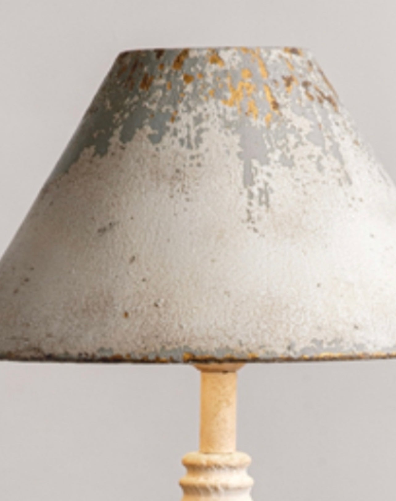 Transform your space in a matter of a few moments with a fun lamp like this one! This charming lamp features a gorgeous wood pedestal base with a chippy rustic beige finish, and a metal distressed lampshade. Arrange it on a table top or counter to infuse your space with style!